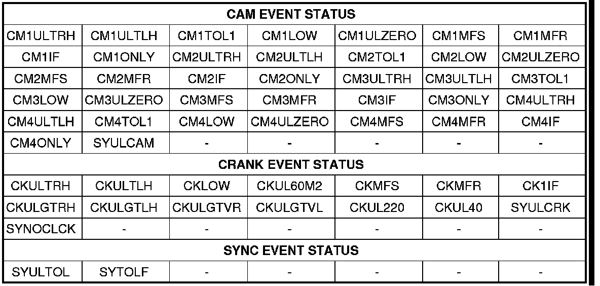 CAM, CKP and/or SYNC EVENT STATUS
