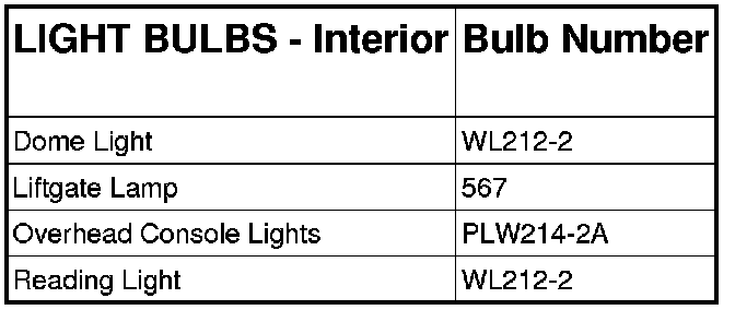 REPLACEMENT LIGHT BULBS - INTERIOR