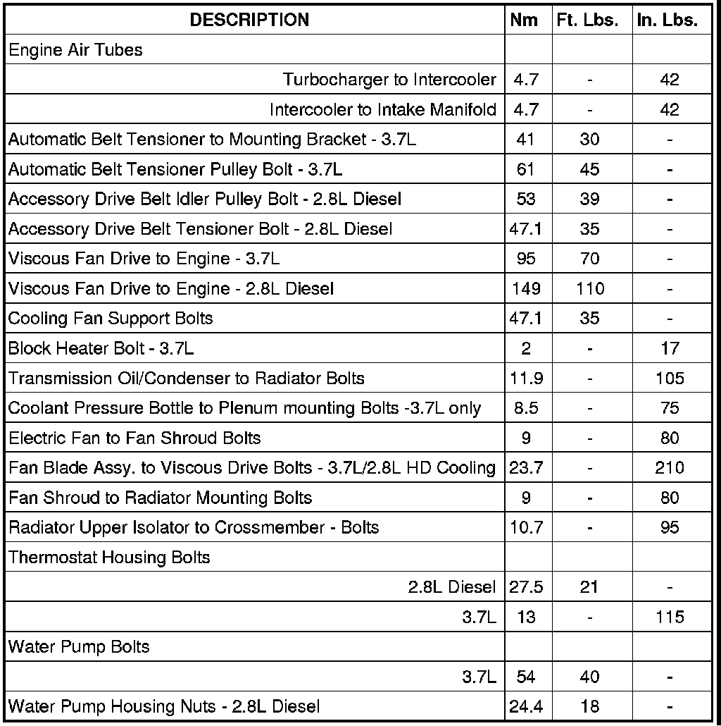 Cooling System: Specifications