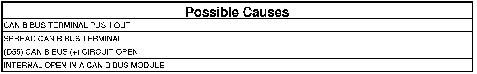 - Repair the (D55) CAN B Bus (+) circuit for an open between the next common splice and the module that has the red X displayed next to it. Use the wiring diagrams will help you determine where open condition exists.