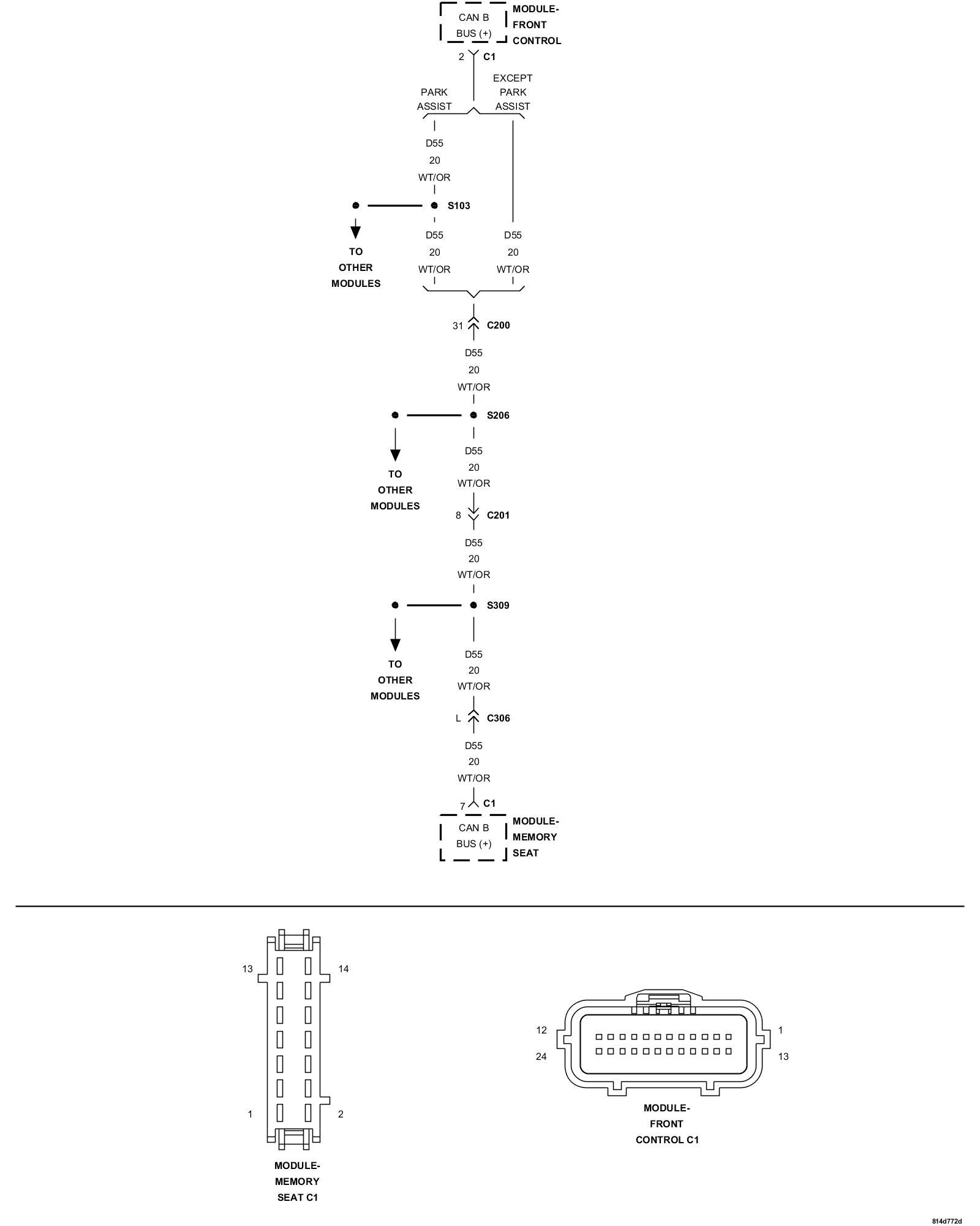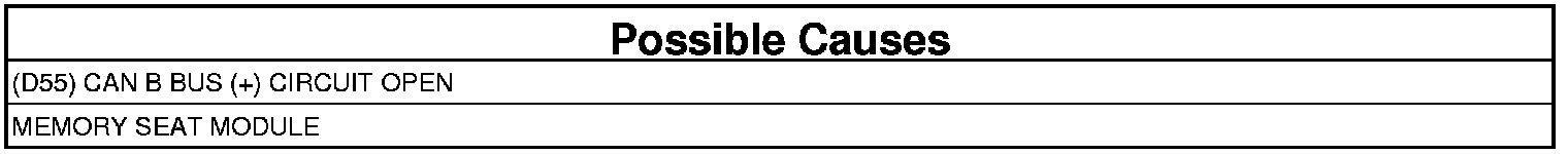The Memory Seat Module detects the (D55) CAN B Bus (+) circuit is open.
