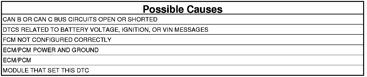 NOTE: Check for FCM configuration, CAN B or C hardware electrical, VIN Missing/Mismatch, battery or ignition related DTCs.