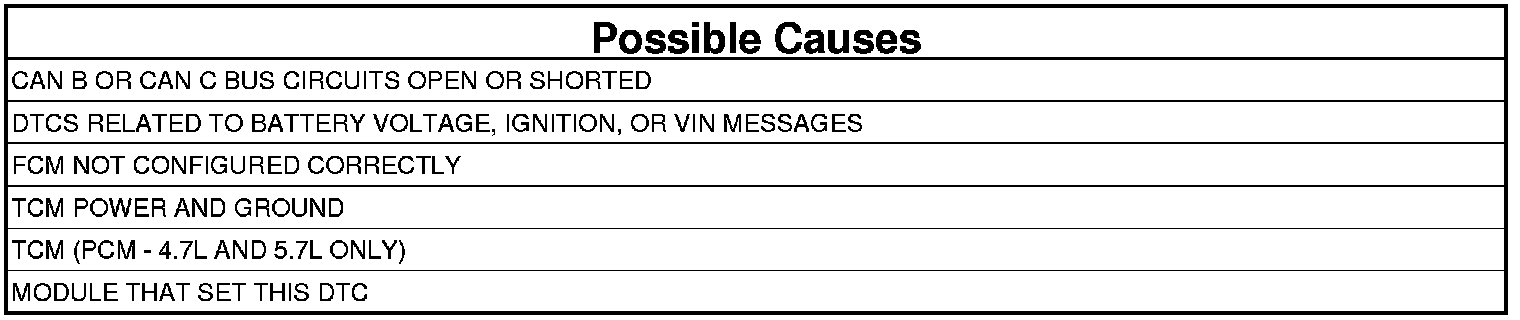 NOTE: Check for FCM configuration, CAN B or C hardware electrical, VIN Missing/Mismatch, battery or ignition related DTCs.
