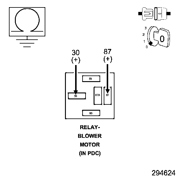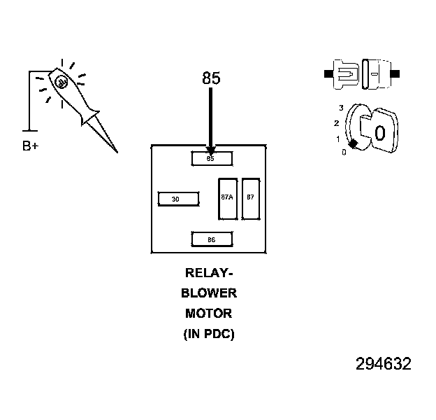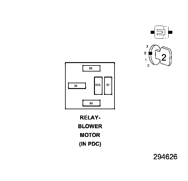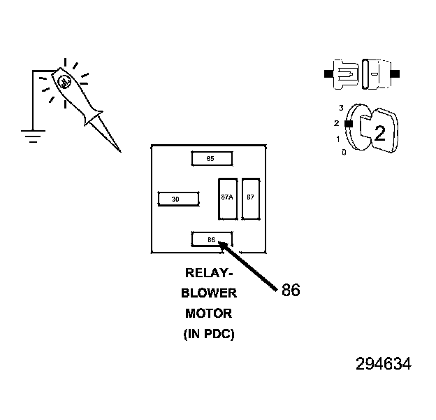 1. Install a substitute relay in place of the existing Front Blower Motor Relay in the PDC.