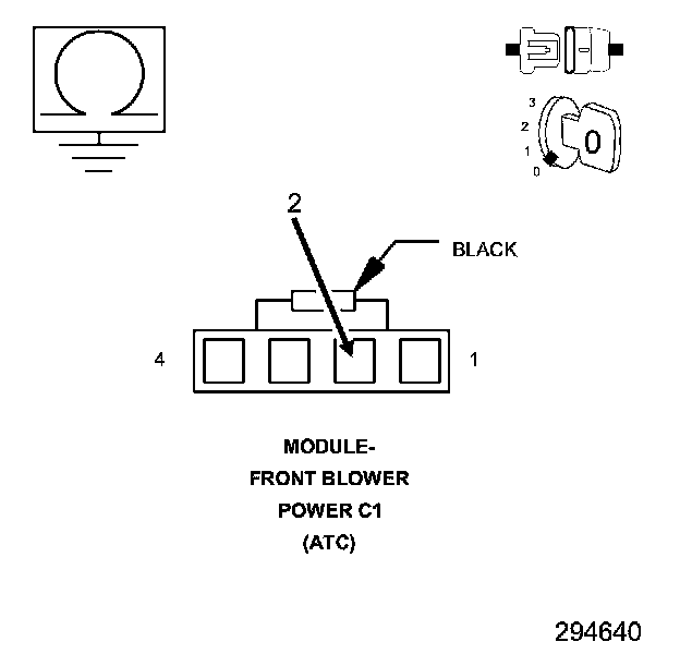 2. Measure the resistance of the (Z134) Ground circuit between ground and the Front Blower Motor Power Module C1 harness connector.