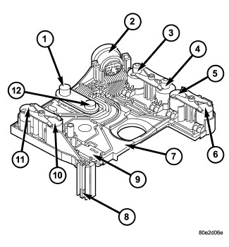 Signals from the transmission control module (TCM) are converted into hydraulic functions in the electric valve control unit (7). The RPM sensors (1, 12), starter interlock contact (9), and transmission oil temperature sensor (8) of the electric valve control unit (7) supply the TCM with input signals. The solenoid valves are controlled by the TCM and trigger the hydraulic functions.