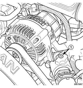 4. Route hose away from the accessory drive belt, drive pulleys and electric cooling fan. Place the other end of hose into a clean container. The hose will prevent coolant from contacting the accessory drive belt when bleeding the system during the refilling operation.