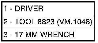 7. If splined, insert a 5/16" 6-point hex driver (1), or a 10MM 12-point triple square driver into tool 8823 (VM.1048).