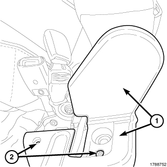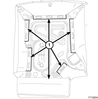6. Install the seat side trim panel covers (1) and fully seat the retainer clips.