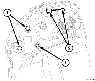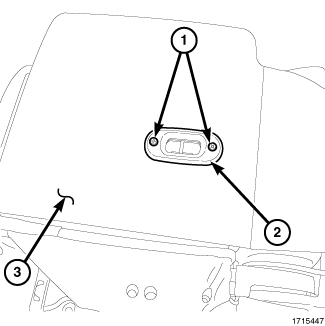 9. Install child safety tether bezel (2) and bezel fasteners (1).