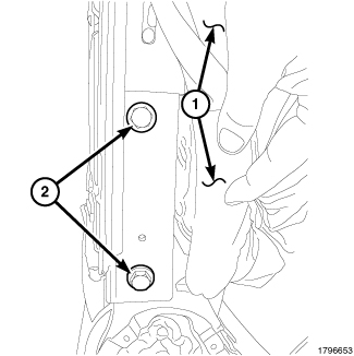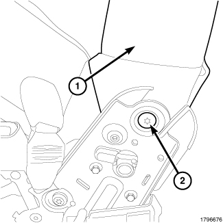 5. Tighten the recliner to seat cushion frame bolts (2) to 24 Nm (18 ft. lbs.).