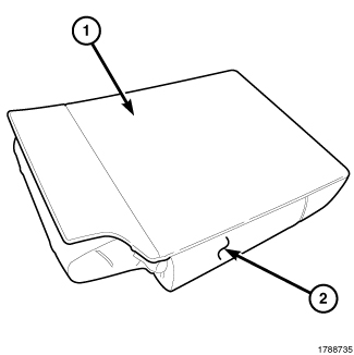 8. Install the seat back trim cover panel (1) to the seat back (2).