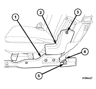 6. Remove the bolt (5) and remove the lower seat belt anchor (4).