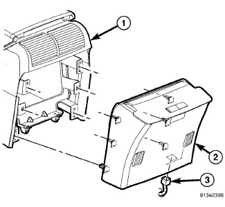 15. Install the console rear cover (2) or the DVD player (if equipped).