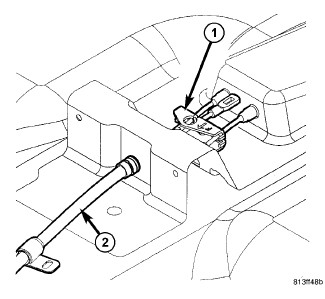 5. Install the front cable (2) at the equalizer (1).