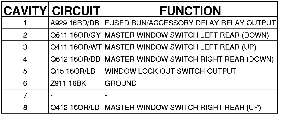 Driver Window/Door Lock Switch C1 (Driver Door Jumper) 8 Way