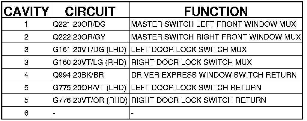 Driver Window/Door Lock Switch C2 (Driver Door Jumper) 6 Way