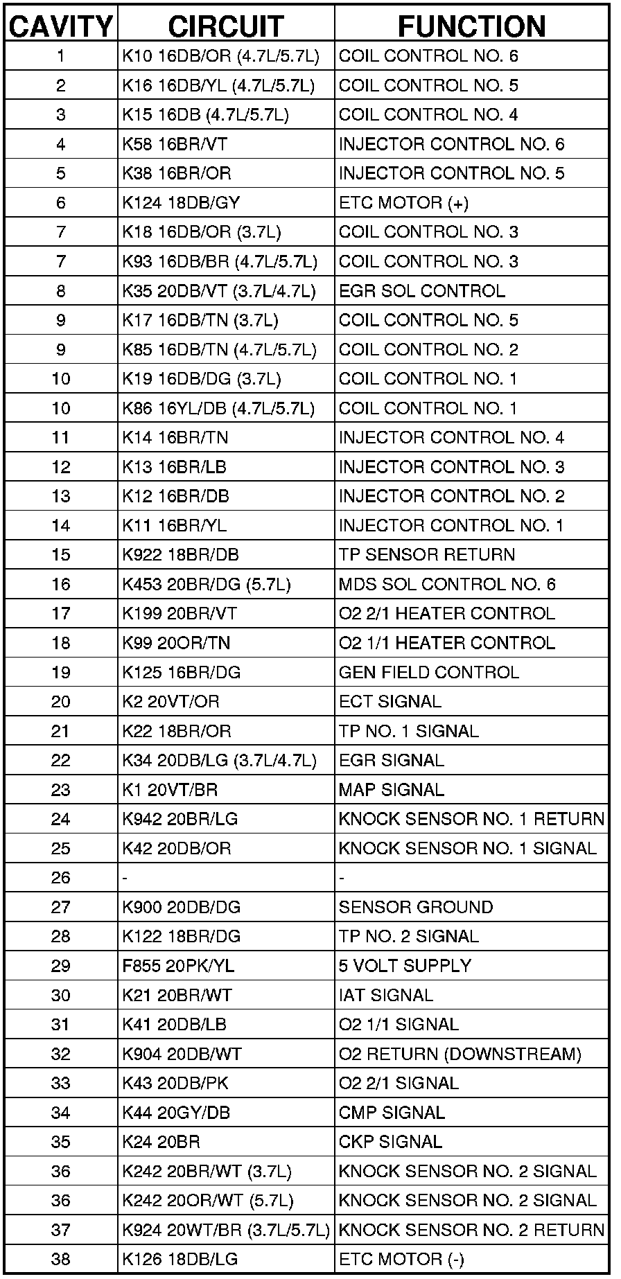 Connector C2 (GAS) - (INJECTOR) 38 WAY
