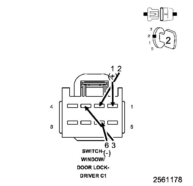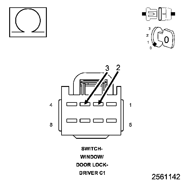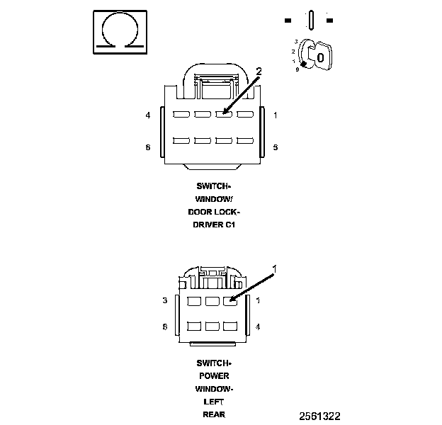 2. Connect a Jumper wire between the Ignition Switch Output circuit (cavity 1) and the Master Window Switch Left Rear (Down) circuit (Cavity 2) in the Driver Switch C1 connector.