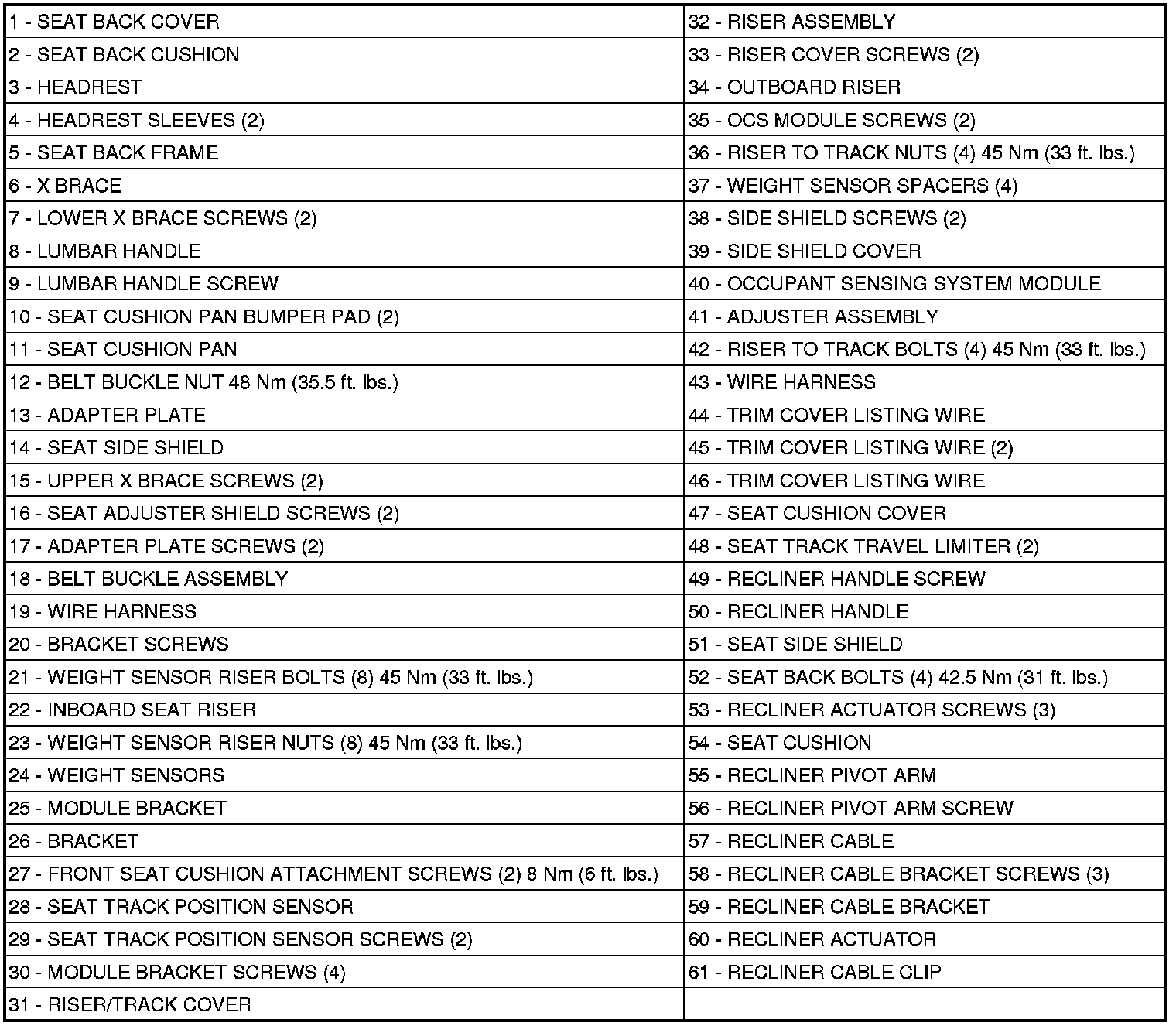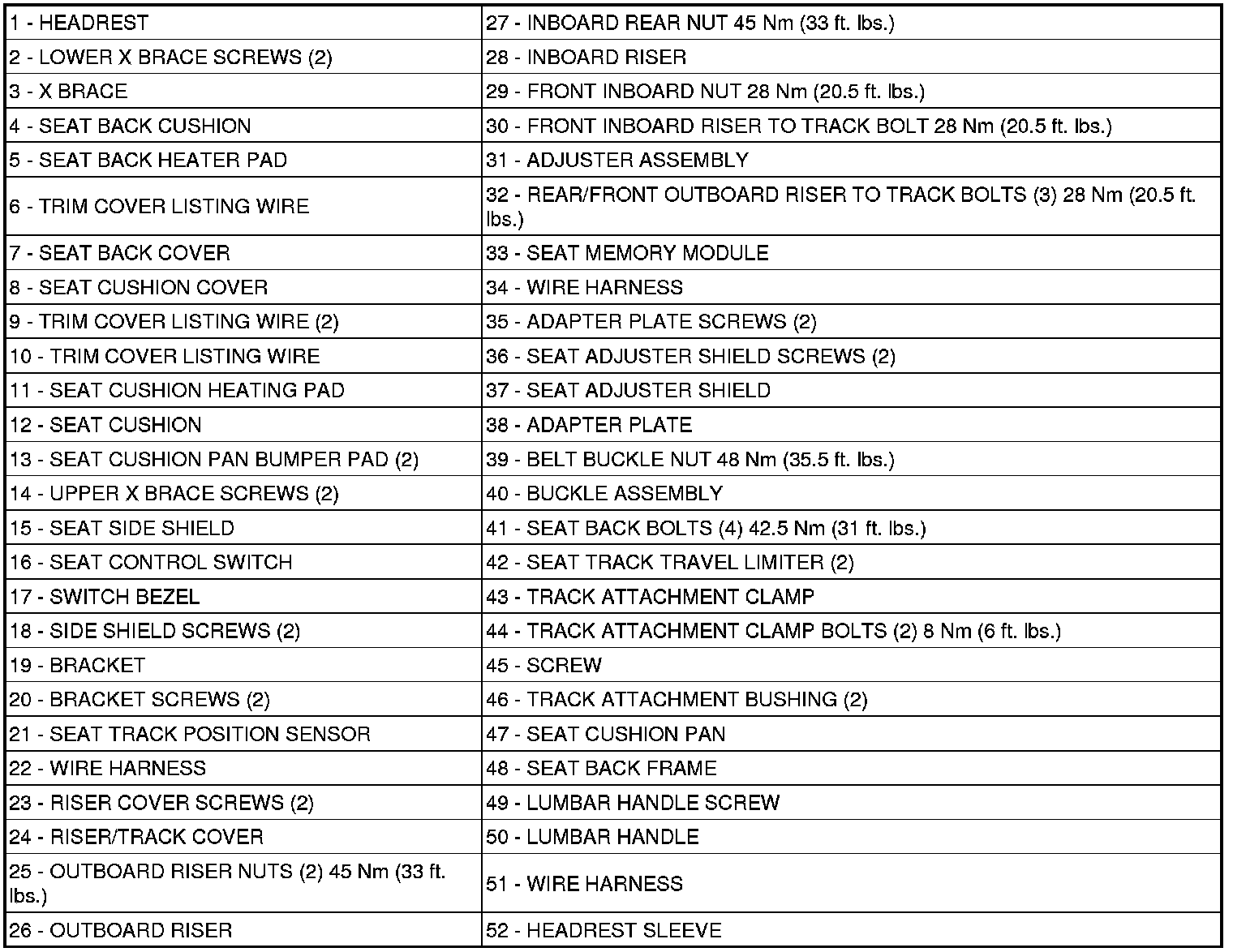 PASSENGER SIDE TWO WAY MANUAL SEAT