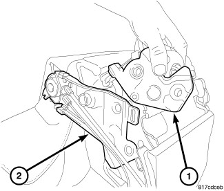 3. Position the latch assembly (1) back into the seat frame assembly (2).