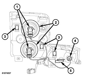 NOTE: There are three vents on the front lamp unit, one each for the low beam, high beam and park/turn signal bulb compartments. The service procedures for each vent are the same only the location on the housing differs.