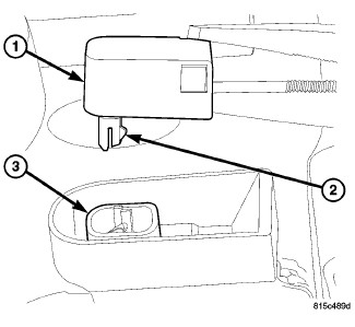 3. Using a suitable pair of pliers, firmly grasp the vent (1) and pry it out of the vent chimney formation (3) on the back of the lamp housing until the vent latch features (2) release.