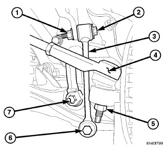 10. Install stabilizer bar links (3) and bolts (6) on lower control arms and tighten to specifications.