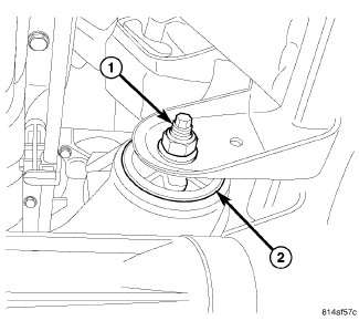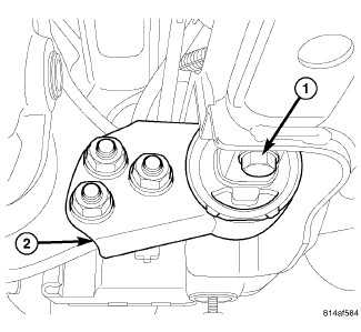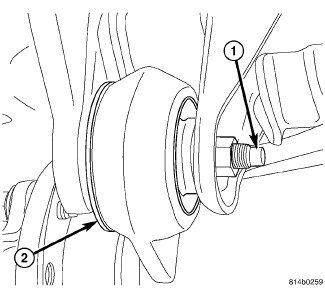 5. Install differential cover axle bracket (2) bushing bolts (1) and tighten bolts to 47 Nm (35 ft. lbs.)