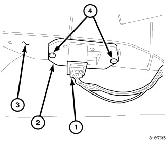 2. Install the two screws (4) that secure the blower motor resistor to the HVAC housing. Tighten the screws to 1.2 Nm (10 in. lbs.).