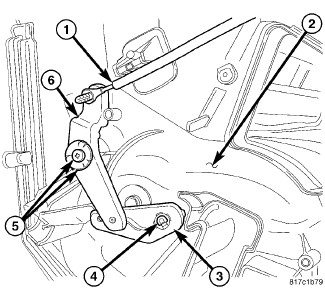 10. Install the blend door lever (6) onto the air distribution housing. Make sure the levers are correctly aligned to each other.