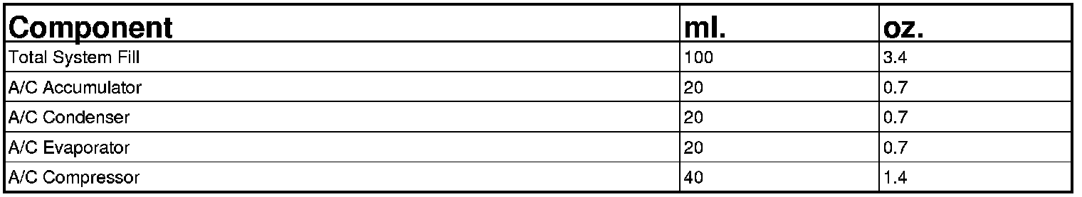CAPACITIES - 5SE12 A/C COMPRESSOR