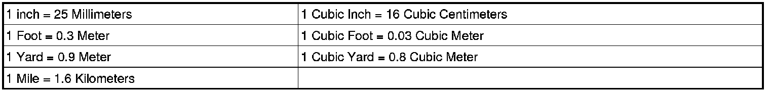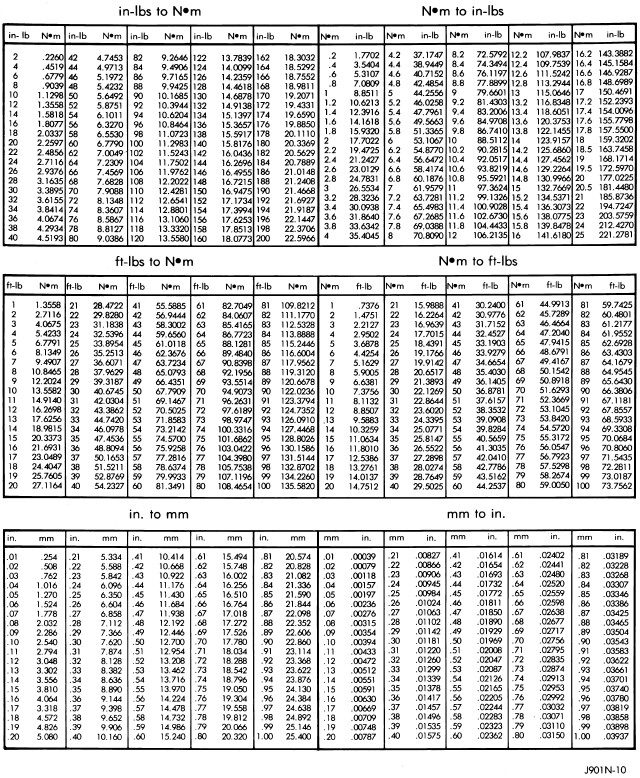 Refer to the Metric Conversion Chart to convert torque values listed in metric Newton Meters (Nm). Also, use the chart to convert between millimeters (mm) and inches (in.).