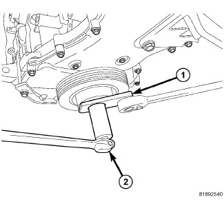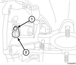 42. On FWD vehicles, pull the exhaust pipe (1) rearward with a suitable strap (2).