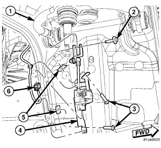 6. Remove the two screws (3) that secure the sensor mounting bracket to the right front wheel house.