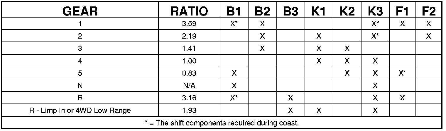 A slipping clutch can often be determined by comparing which internal units are applied in the various gear ranges. The Clutch Application chart CLUTCH APPLICATION provides a basis for analyzing road test results.