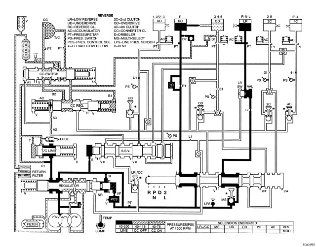 HYDRAULIC FLOW IN FIRST GEAR (FROM N OR OD)