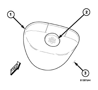 2. Pull the bezel (1) straight down from the headliner (3) to unsnap it from the transducer housing (2) of the intrusion sensor transmitter. Be certain to take the appropriate precautions not to soil or damage the headliner.