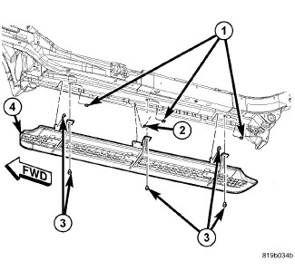 3. Install the running board bolts (3). Tighten the running board bolts (3) and nut (2) to 25 Nm (18.5 ft. lbs.).