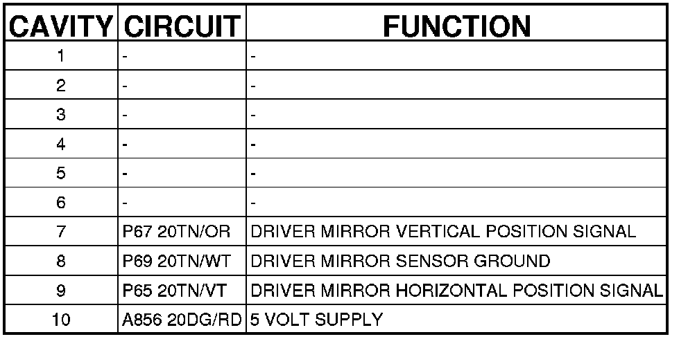 Connector C1 (MEMORY) - (DRIVER DOOR) 10 WAY