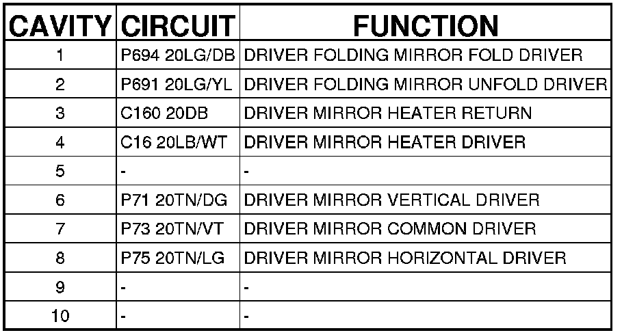 Connector C2 (EXPRESS UP/MEMORY) - (DRIVER DOOR) 10 WAY