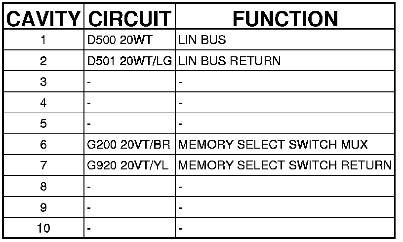 Connector C5 - (DRIVER DOOR) 10 WAY