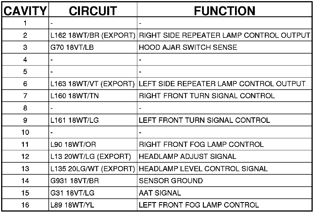Connector C4 - (FRONT END MODULE) 16 WAY