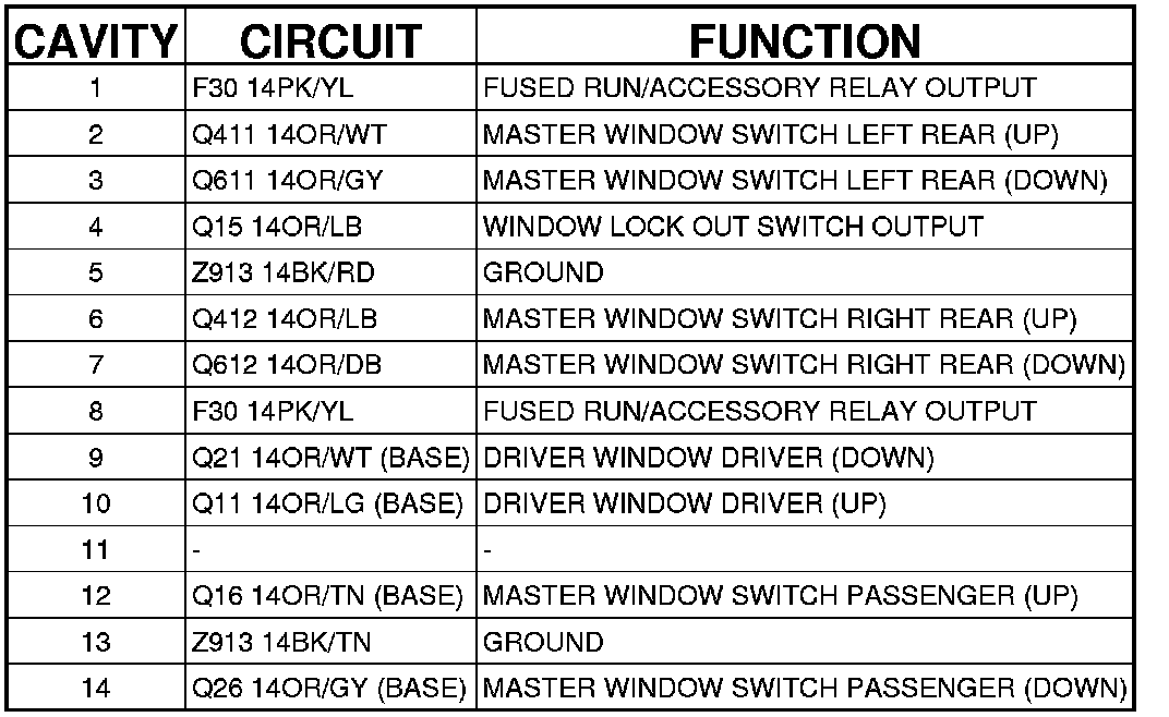 Driver Window/Door Lock Switch C1 (Front Door) 14 Way