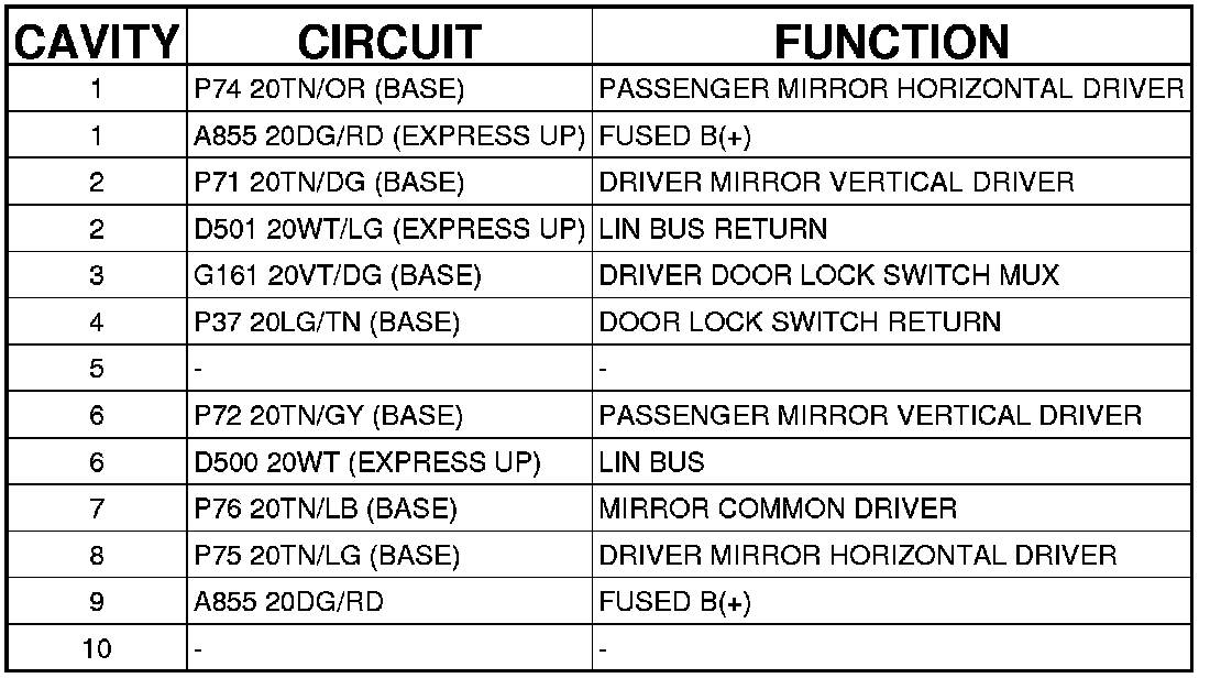 Driver Window/Door Lock Switch C2 (Front Door) 10 Way