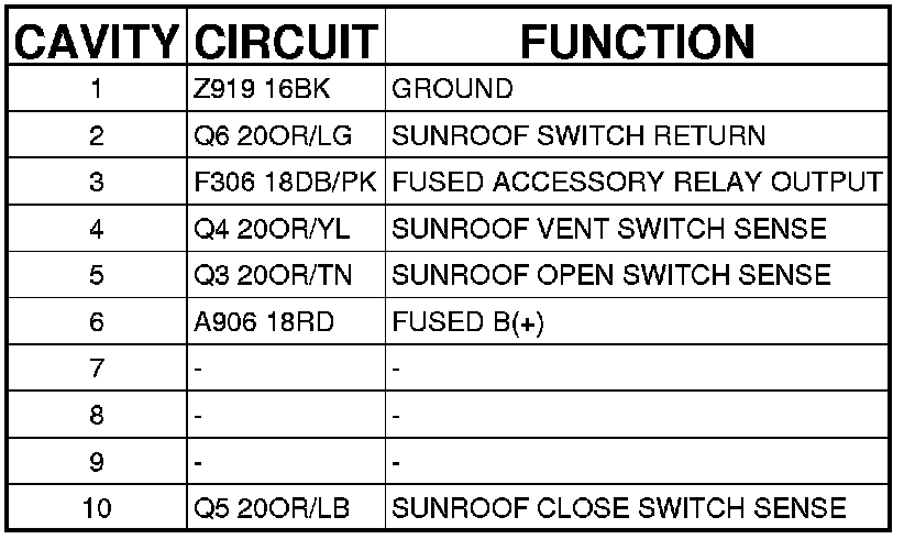 MODULE-SUNROOF (SUNROOF) - (OVERHEAD) 10 WAY