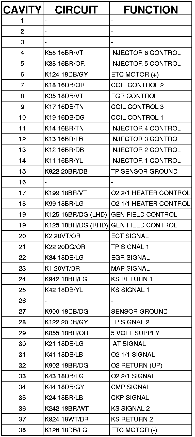 Connector C2 (GAS) - (ENGINE) 38 WAY