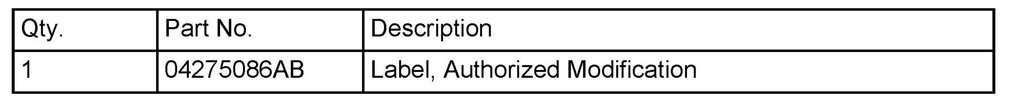 2. Type the necessary information on the "Authorized Modification Label" p/n 04275086AB and attach it near the VECI label.