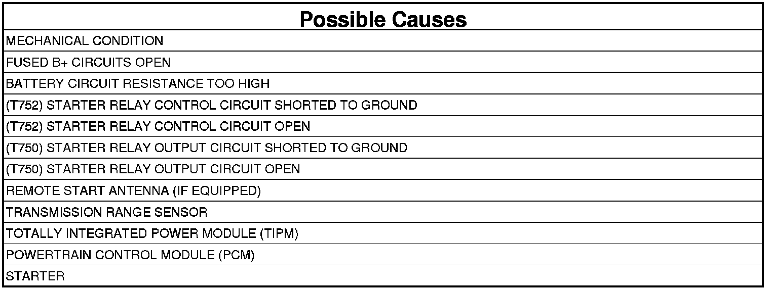 - Repair the excessive resistance or short to ground in the (T752) Starter Relay Control circuit between the PCM and TIPM.