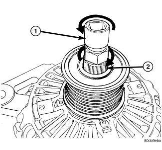 1. Thread the decoupler pulley onto the generator shaft by hand (right-hand threads).